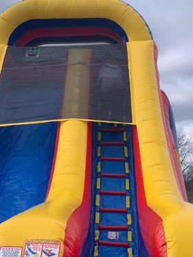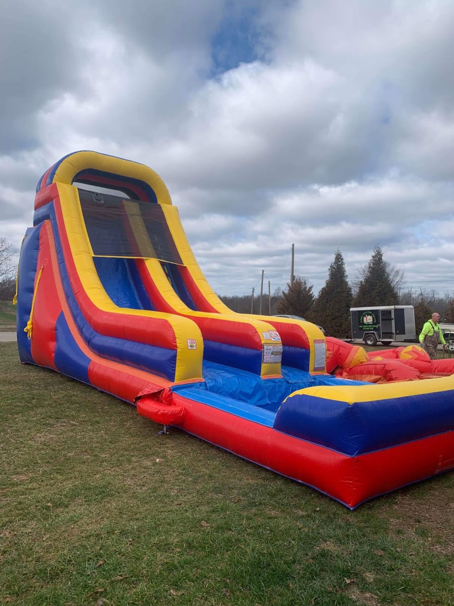 This slide is perfect for older kids and adults! It stands 18 foot tall, 12 foot wide and 34 foot long! This slide can be used with or without water, and has a splash pool for added fun in the sun!