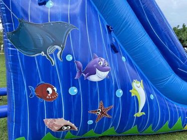 Our 15 FT Ocean Wave is great for the smaller children who don’t yet have the nerve to try out our bigger slides. It has cartoon fish printed on the side and can be used wet or dry!